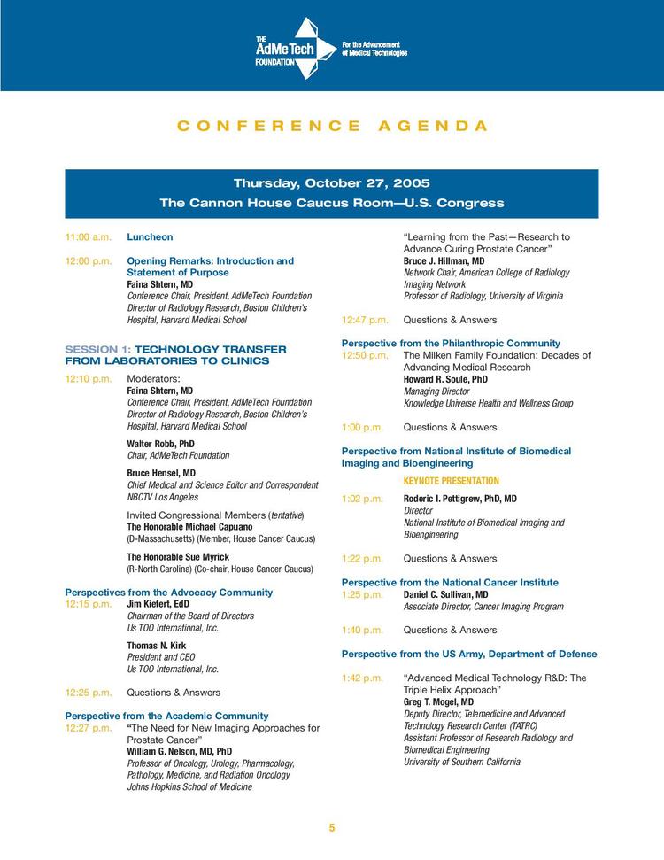 The Third Public Conference on Image-Guided Diagnosis and Treatment of Prostate Cancer brought together global leaders of academia, industry and advocacy, unveiled an awareness campaign “Where is our Manogram®” and resulted in broad support in US Congress.