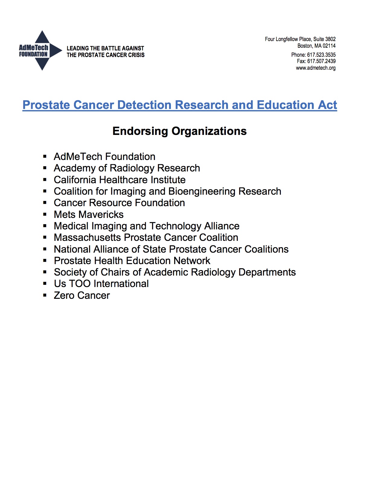 Senator Barbara Boxer (D-CA) and Representative Elijah E. Cummings (D-MD) introduced the AdMeTech-driven bipartisan Prostate Cancer Detection Research and Education Act, in order to authorize $180M in federal funding for research and education to improve early detection of prostate cancer.