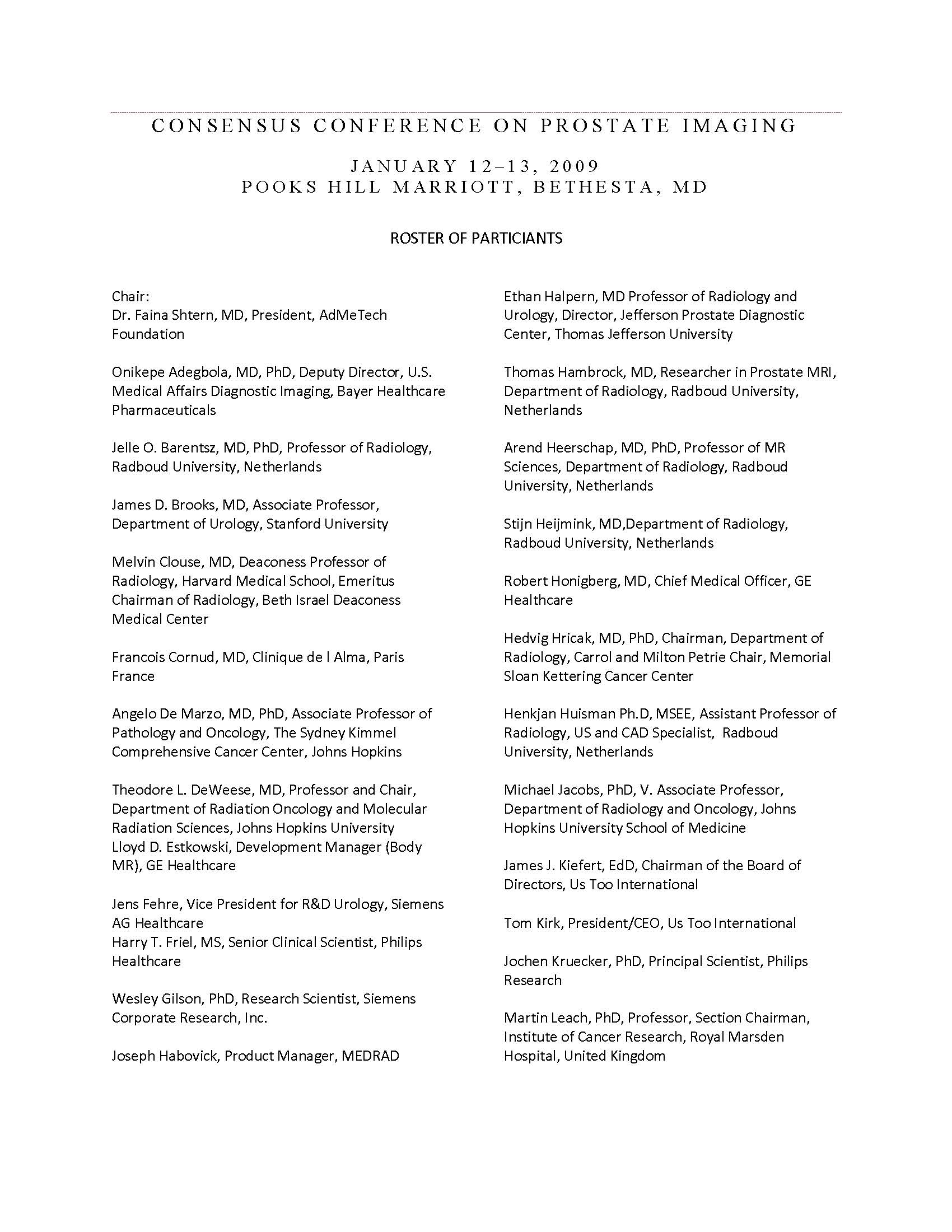 Faculty Members for AdMeTech Consensus Conference, January 2009