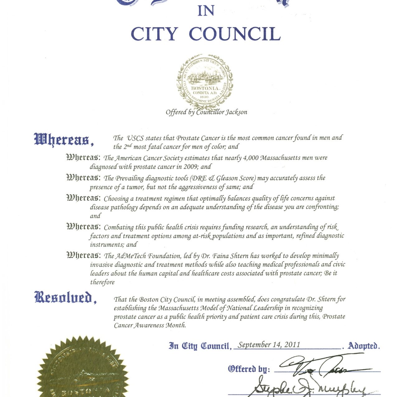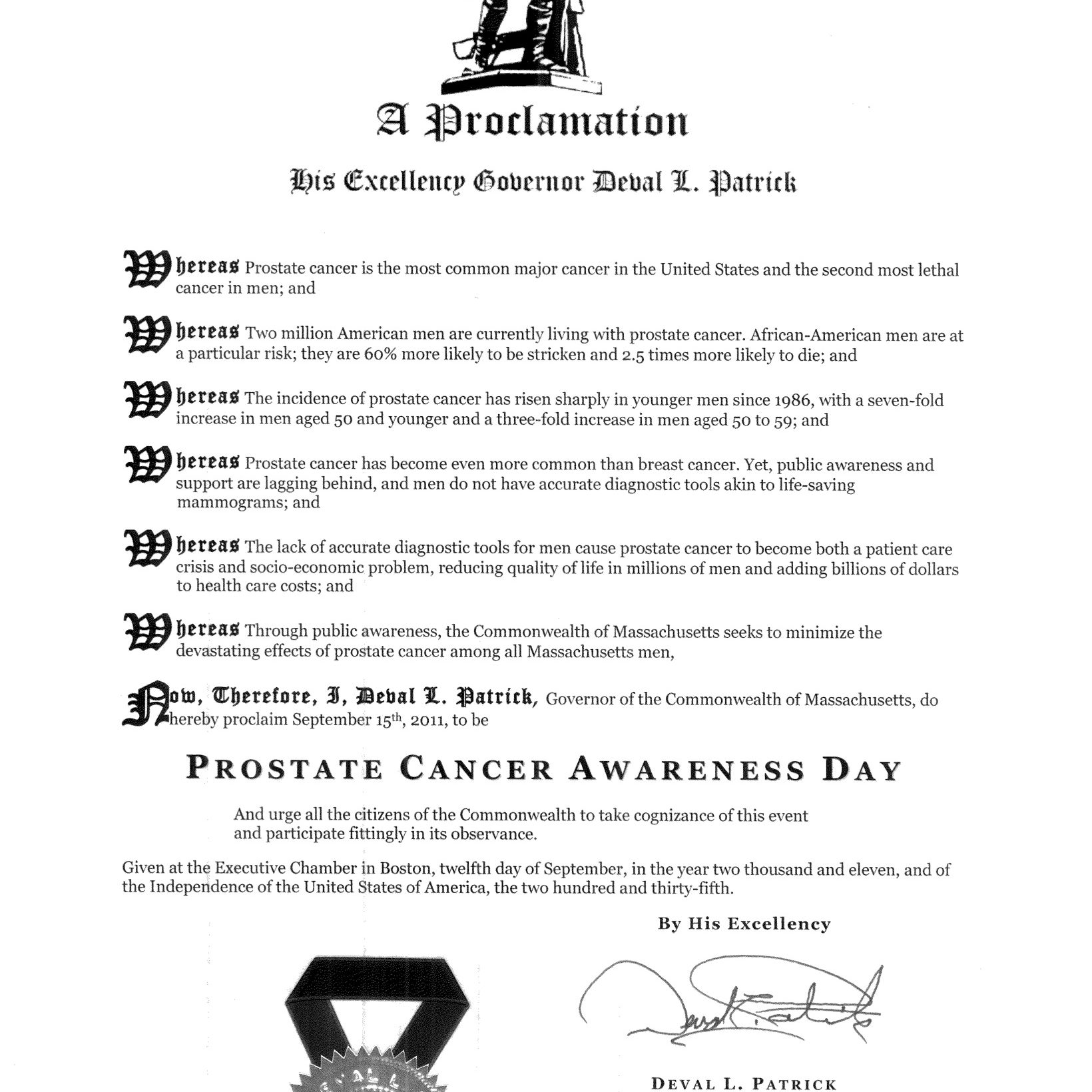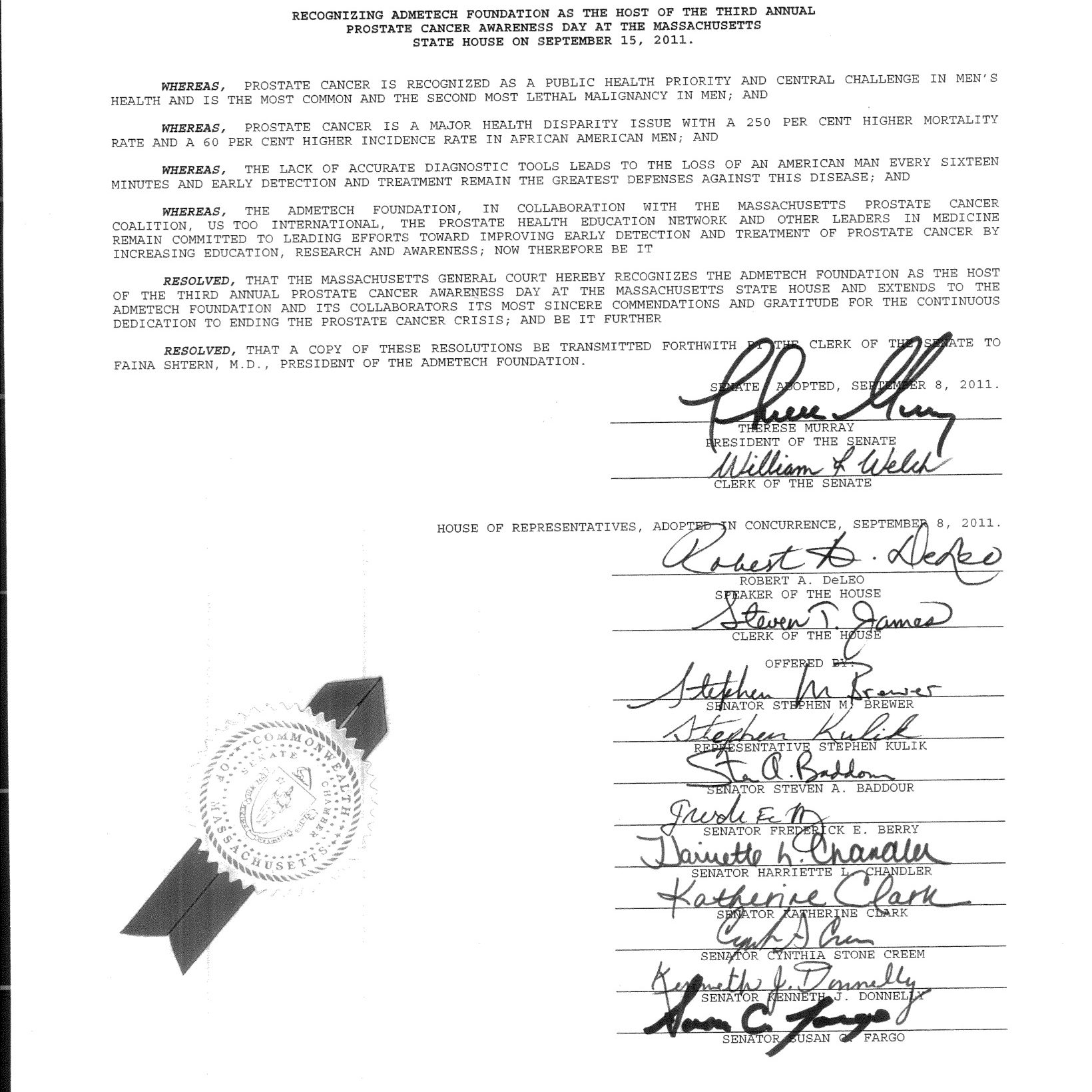On September 15, 2011, AdMeTech Foundation coordinated the third annual Prostate Cancer Awareness Day at the Massachusetts State House. Like the two before it, PCAD 2011 was attended by local legislators and members of the medical and advocacy communities, as well as Mike Milbury, former Boston Bruins player and NBC Sports Analyst, the Master of Ceremonies. PCAD 2011 was presented by AdMeTech Foundation in cooperation with members of the Massachusetts State House, Massachusetts Prostate Cancer Coalition, Prostate Health Education Network and US Too International.